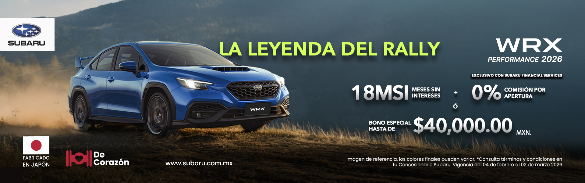 CAMINO DEL SOL AUTOS S DE RL DE CV, es un sociedad mercantil debidamente constituida de conformidad con la legislación de los Estados Unidos Mexicanos, bajo la marca de SUBARU, sucursal TIJUANA, con domicilio en Avenida / Calle Vía Rápida Oriente número 6810, Colonia Rio Tijuana 3ra Etapa, Código Postal 22226, Alcaldía / Municipio / Localidad Tijuana, Estado Baja California, México, la cual es responsable del tratamiento de los datos personales que proporcione (en adelante, la "SUBARU TIJUANA").